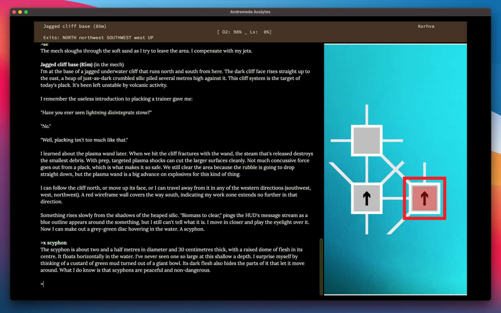 Andromeda Acolytes is being developed by Wade Clarke, a developer with a long history of making text adventure games since the 1980s.